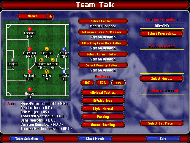 Ultimate Soccer Manager 98 (aka DSF Fussball Manager '98, Football Manager 98, USM 98) is a video game published in 1998 on Windows by Sierra On-Line, Inc.. It's a simulation and sports game, set in a managerial and soccer / football (european) themes.