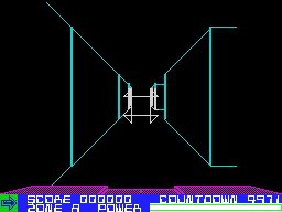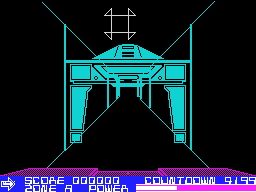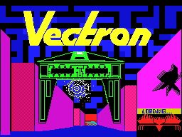 Here is the video game “Vectron”! Released in 1985 on ZX Spectrum, it's still available and playable with some tinkering. It's an action game, set in an arcade, sci-fi / futuristic and shooter themes.