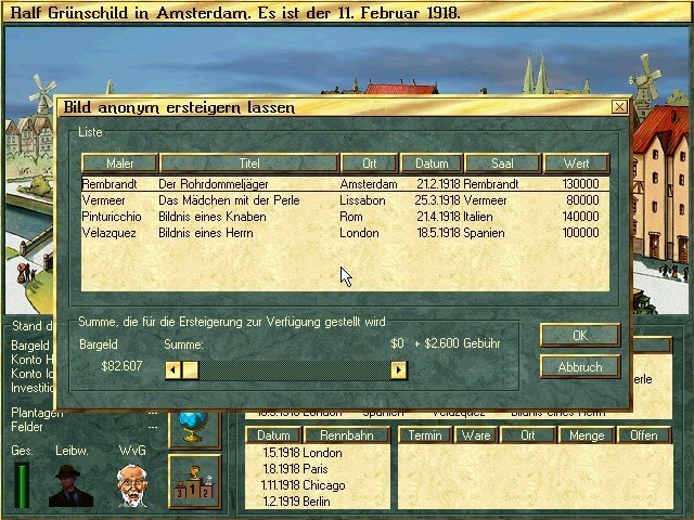 Here is the video game “Vermeer: Die Kunst zu erben”! Released in 1997 on Windows, it's still available and playable with some tinkering. It's a strategy game, set in a turn-based and trade themes.
