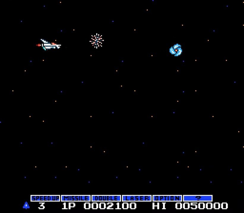 VS. Gradius (aka VS. グラディウス, アーケードアーカイブス VS. グラディウス) is a video game published in 1986 on Arcade by Konami Industry Co. Ltd.. It's an action game, set in an arcade, sci-fi / futuristic, shooter, licensed title and space flight themes.