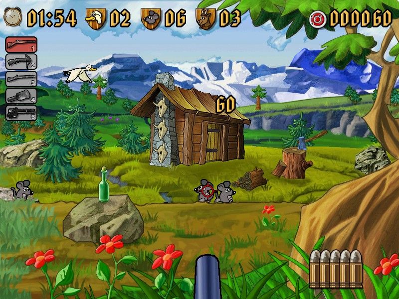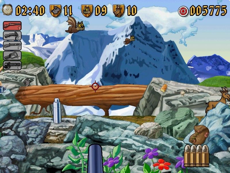 Here is the video game “Waldmeister Sause: Edelweiß”! Released in 2004 on Windows, it's still available and playable with some tinkering. It's an action game, set in a hunting and shooter themes.