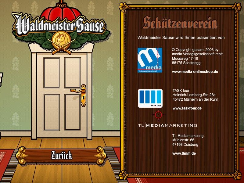In 2003, media Verlagsgesellschaft mbH publishes Waldmeister Sause on Windows. This action game is now abandonware and is set in a hunting and shooter themes.