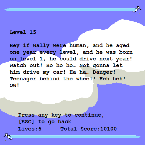 In 2004, Button Man Games publishes Wally: Land of the Wallows on Windows. This action game is now abandonware and is set in a platform and puzzle elements themes.