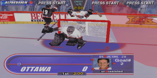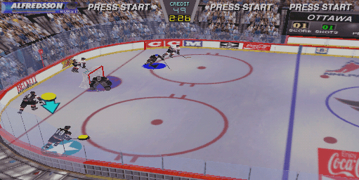 In 1996, Atari Games Corporation publishes Wayne Gretzky's 3D Hockey on Arcade. This sports game is now abandonware and is set in a hockey and licensed title themes.