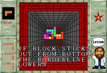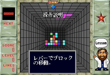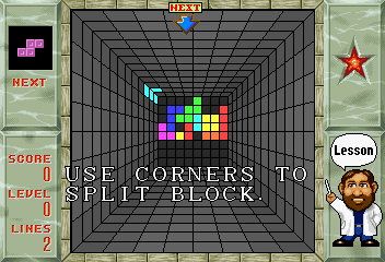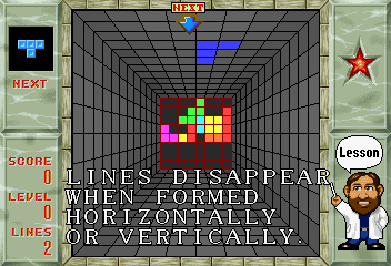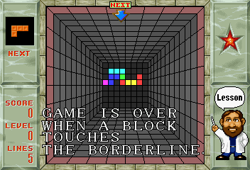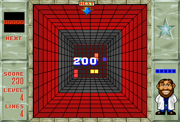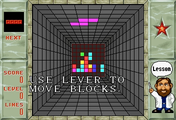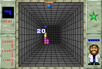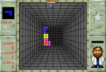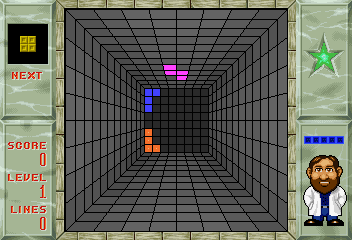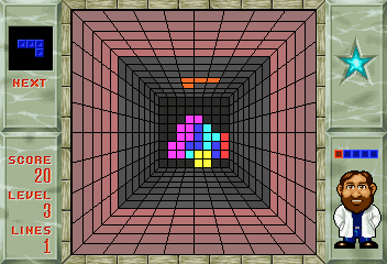 This game had a lot of hype and a lot of anticipation behind it, based on the success of Tetris. It wound up being a major flop sales-wise, because what looked great in concept - Tetris from four sides and not just top-down - made for some really difficult gameplay. Someone did a shareware variant on this where instead of revolving the pieces around the shaft, you rotated the target base and game play worked significantly better. Sad I can't find a copy of it online anywhere, otherwise I'd post the link here :(
