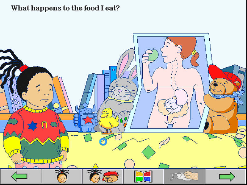 If you haven't played What is a Bellybutton? or want to try this educational video game, download it now for free! Published in 1994 by B&N Companies, Inc., Mirage Multimedia, Inc., What is a Bellybutton? was an above-average health / nutrition title in its time.