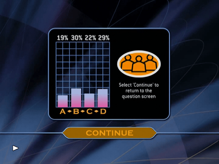 Share your gamer memories, help others to run the game or comment anything you'd like. If you have trouble to run Who Wants to Be a Millionaire: 2nd Edition (DVD Player), read the abandonware guide first!