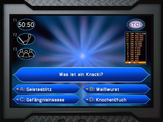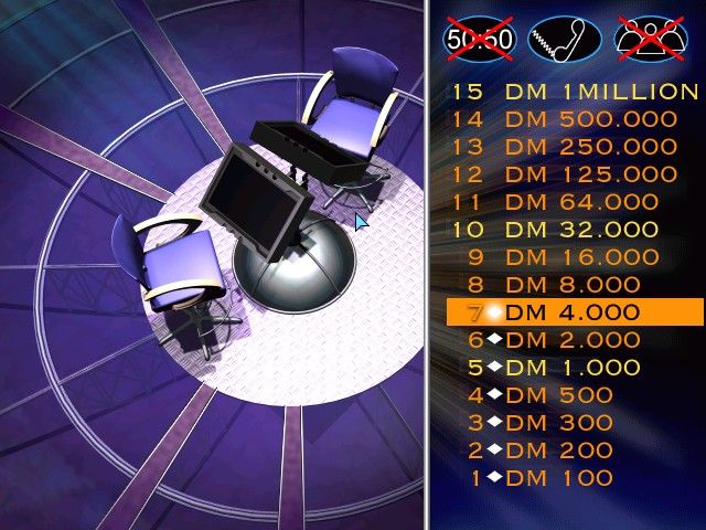 In 2000, Sold Out Sales & Marketing Ltd., Eidos Interactive Limited publishes Who Wants to Be a Millionaire on Windows. This puzzle game is now abandonware and is set in a game show / trivia / quiz and licensed title themes.