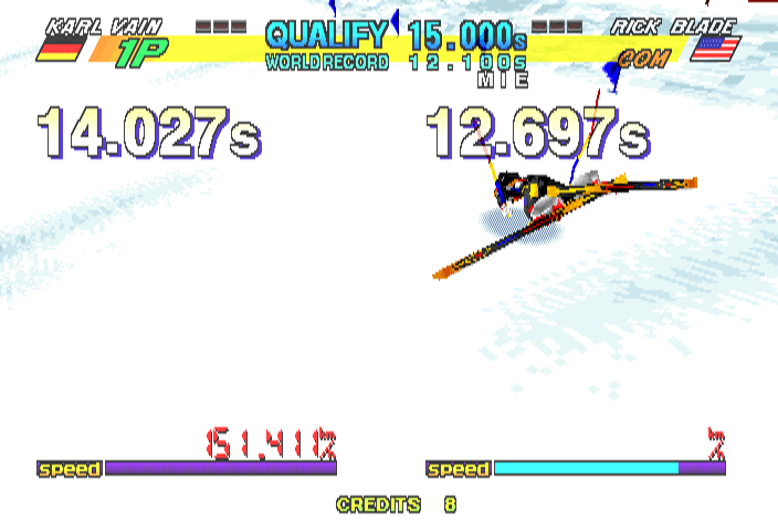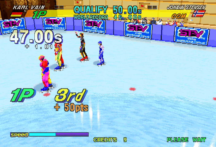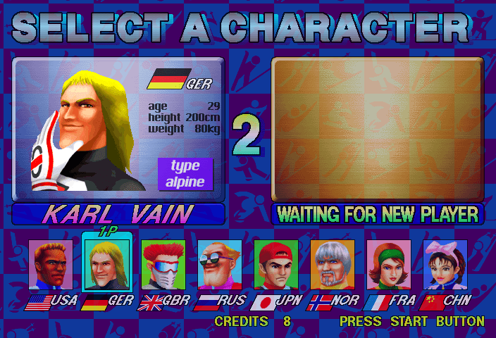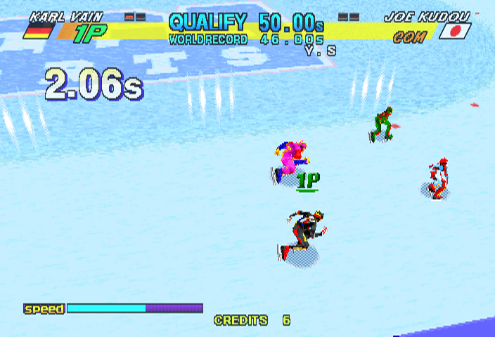 Here is the video game “Winter Heat”! Released in 1998 on SEGA Saturn, it's still available and playable with some tinkering. It's a sports game, set in an olympiad and snowboarding / skiing themes and it was released on Arcade as well.