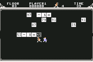 Here is the video game “Wizard of Id's WizMath”! Released in 1984 on Commodore 64, it's still available and playable with some tinkering. It's an educational and puzzle game, set in an arcade, math / logic and licensed title themes.