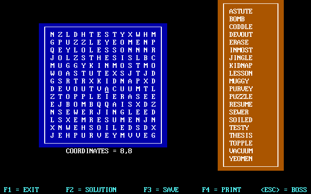 If you haven't played Word Hunt or want to try this puzzle video game, download it now for free! Published in 1992 by Ssorg Software, Word Hunt was an above-average word construction title in its time.