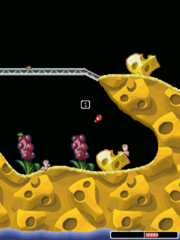 The game physics - don't be scared of the 'P' word, kids - are often working against you. Things to take in consideration when firing are distance, obstructions, weapon damage zone, other worms, wind speed and firing power. Your selection of available weapons is neatly packed into a menu, which is accessible by pressing the right mouse button. The cursor keys are used to move your worm around and aim, and the spacebar fires the chosen weapon.