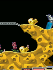 Don't think that WWP is some kind of horrific game about worm abuse. Like the previous incarnations, the graphics and animations are all carried off with aplomb cartoon style. The level terrain and backdrops are prime examples, with cartoon ships, planes and villages all providing a platform for annelid antics (that's another word for "worms," because it's getting too repetitive to type). Team17 has provided a game that can be played and appeals to all genders and generations.