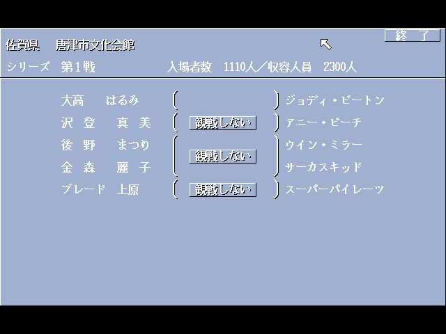 Share your gamer memories, help others to run the game or comment anything you'd like. If you have trouble to run Wrestle Angels Special: Mō Hitori no Top Eventer (FM Towns), read the abandonware guide first!