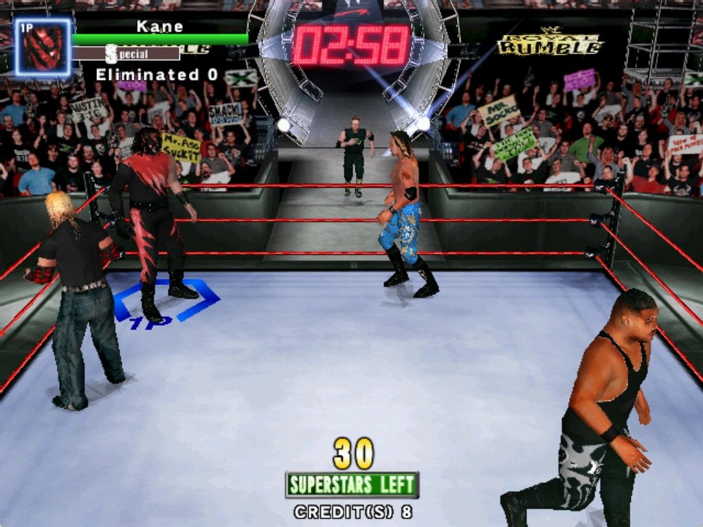 WWF Royal Rumble (aka WWF ロイヤルランブル) is a video game published in 2000 on Arcade by SEGA Enterprises, Inc.. It's a sports game, set in a wrestling and licensed title themes.