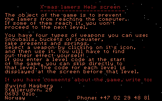 If you haven't played X-mas Lamers or want to try this action video game, download it now for free! Published in 1992, X-mas Lamers was an above-average christmas title in its time.