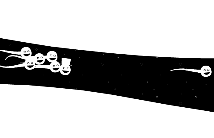 Here is the video game “You Have to Fertilize the Egg”! Released in 2008 on Windows, it's still available and playable with some tinkering. It's a racing / driving game, set in a comedy theme.