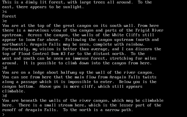 Although liking Zork (I don't know if it's just this blue-screen version), Dungeon has to be the most sloppily-put-together game I've ever seen - the directions make no sense!
